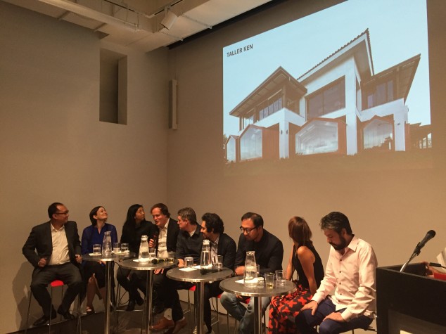 05.12.16: The winners of the 2016 AIANY New Practices New York competition discussed their work at the opening of the New Practices New York 2016 exhibition. (l-r) Phu Hoang, AIA, and Rachely Rotem, MODU; Troy Schaum and Rosalyne Shieh, AIA, SCHAUM/SHIEH; Bryan Young, AIA, Young Projects; Benjamin Cadena, AIA, Studio Cadena; Seung Teak Lee, stpmj; Ines Guzman and Gregory Melitonov, Assoc. AIA, Taller KEN; and James Slade, FAIA, IIDA, LEED AP, Slade Architecture.
