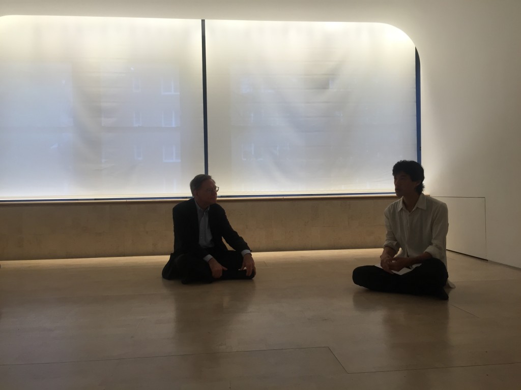 10.20.16: Masa Sono of Clouds Architecture Office, and dedicated Archtober tour-goer Michael Kane meditate the Center for Remembering and Sharing, the Archtober Building of the Day #20,.