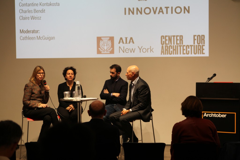 10.25.16: Cathleen McGuigan, Editor-in-Chief of Architectural Record, moderated a panel discussion between Claire Weisz, FAIA, Principal-in-Charge, WXY architecture + urban design; Constantine Kontakosta, Professor of Urban Informatics and Deputy Director of Quantified Community Research, NYU Center for Urban Science and Progress; and Charles Bendit, Co-chief Executive Officer, Taconic Investment Partners, to discuss the many reasons why older buildings are preserved.