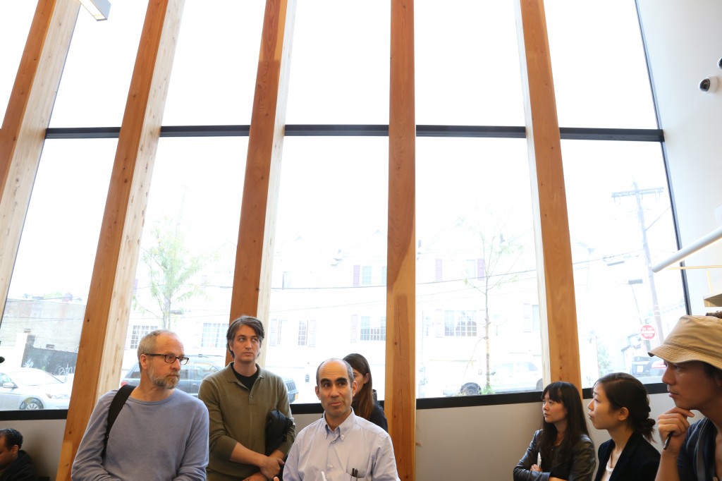 10.03.14: AIANY Executive Director Rick Bell, FAIA (left), and AIANY 2014 President Lance Jay Brown, FAIA (right), joined Roger Duffy, FAIA, of SOM, and the New School’s Vice President for Design, Construction, and Facilities Lia Gartner, FAIA, on the Building of the Day tour of the New School’s University Center.