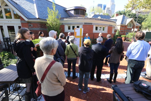10.06.14: Swanke Hayden Connell Architects was well represented at the Building of the Day tour of Tavern on the Green, with Elizabeth Moss, LEED AP; How Zan, LEED AP; Robin Key, RLA, ASLA; and former AIANY President Joseph Aliotta, AIA, explaining the technical aspects of the restoration of this iconic site.