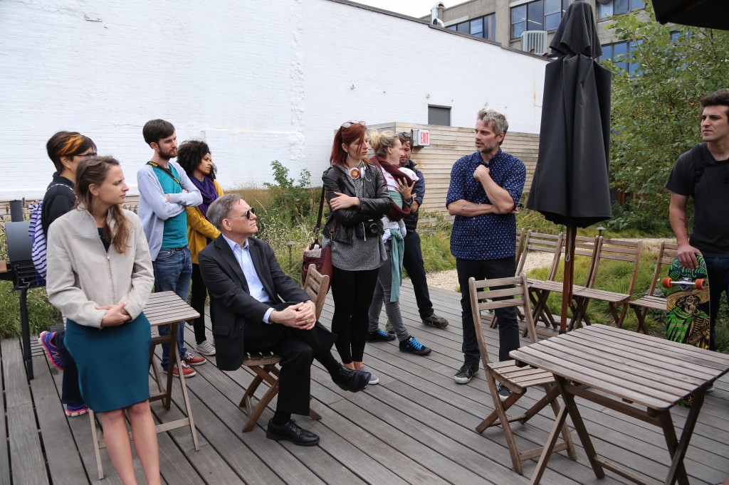10.09.14: Norwegian architect-turned-carpenter Ole Sondresen concluded his Building of the Day tour of the Kickstarter headquarters at the roof garden, which includes native plants slected to provide food and shelter to migratory songbirds.