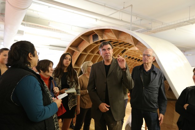 10.10.14: Clive Wilkinson, FAIA, RIBA, gave tour-goers an in-depth account of the design and construction of the much-publicized superdesk during a Building of the Day tour of the Barbarian Group’s office.