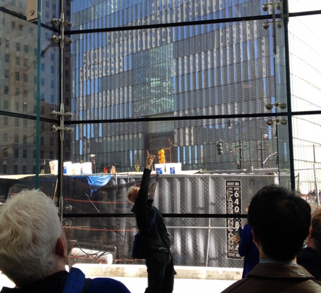 10.12.14: During the Building of the Day #12 tour, Craig Copeland, associate partner in the New York studio of Pelli Clarke Pelli Architects, and design team leader of the Pavilion at Brookfield Place, explained how the pavilion reconnects Battery Park City’s Winter Garden, the newly-completed World Trade Center Concourse, and the MTA and PATH transportation hubs.