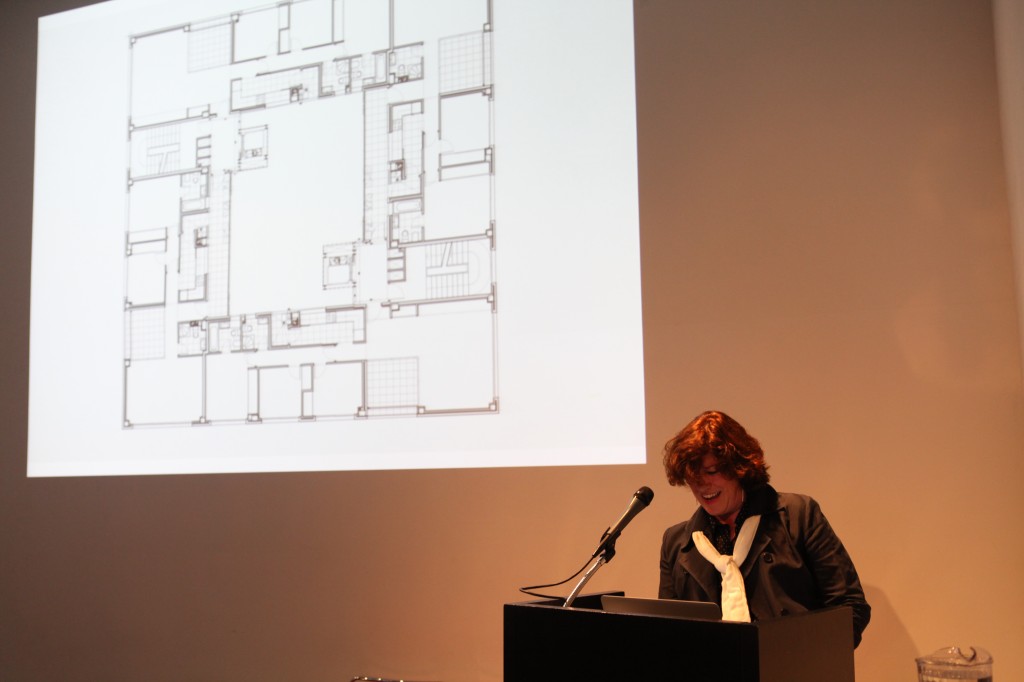 Maria Hurtado de Mendoza, the co-founder of estudio entresitio and associate professor at the New Jersey Institute of Technology College of Architecture and Design, spoke last. Her playful descriptions and metaphors were a fresh take on social housing as a historic tradition. Each new project, she said, is about both “appearance and personality,” and she seeks to find different ways of playing with codes to challenge the notion that large-scale housing need be drab or uniform. She thought of one communal project as a “bread slice” where the crust embodies the “non-stop continuity” of the apartments. By “jiggling” the bread slice, she thickened boundaries to vary how the building interacted with the outside. Generally, Hurtado de Mendoza likes to experiment with how spaces sometimes “trespass their boundaries, or recede, or conform.” Her clever moves, often subtle, can lead to hollowed-out cavities that allow natural light, different size rooms, and a “scarless merger” of typologies.